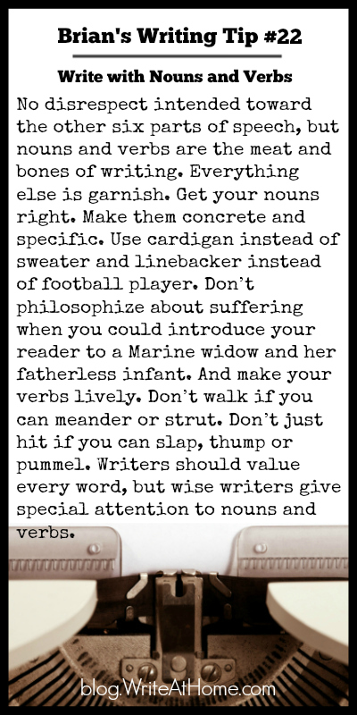 No disrespect intended toward the other six parts of speech, but nouns and verbs are the meat and bones of writing.