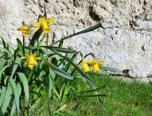 Yet the sun greeted me again as I drove over the Derbyshire hills and into Yorkshire. Traces of white winter lingered in the lee of stone walls where the shadows preserved the last remnants of snow. Daffodils strained at the leash, wanting only a little warmth to burst forth in all their golden glory… and then I hit a wall of fog and I was glad to reach my destination and dinner.