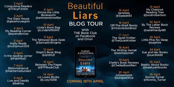 Today I’m absolutely delighted to be on the blog tour for Beautiful Liars by Isabel Ashdown and thank you to Tracy Fenton for inviting me.