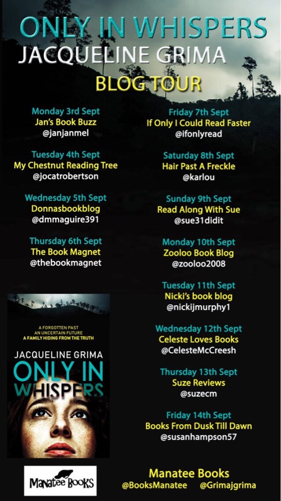 Today I’m sharing my review of Whispers by Jacqueline Grima as part of the blog tour. Many thanks to Tracy Fenton for my invite and review copy of the book.